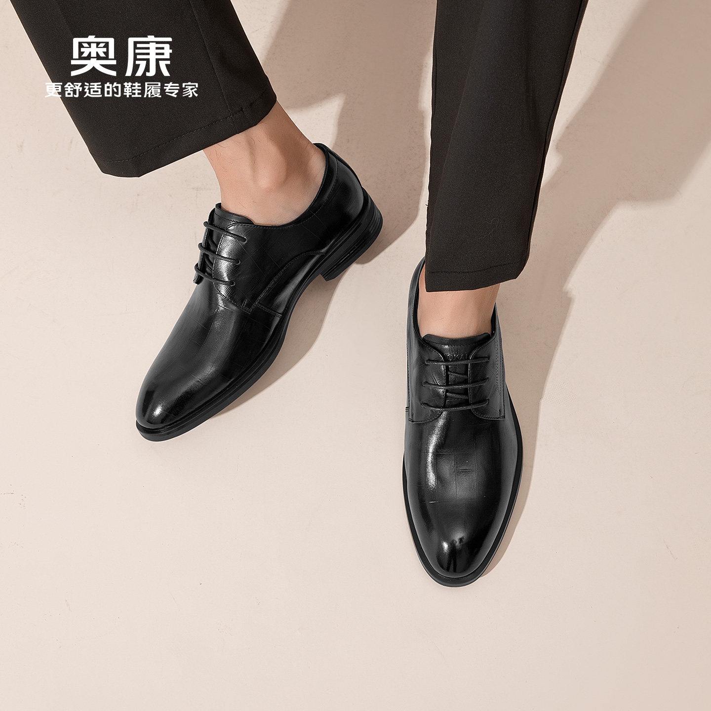 奥康男鞋春秋季商务正装皮鞋牛皮办公室真皮系带男士工作大码皮鞋