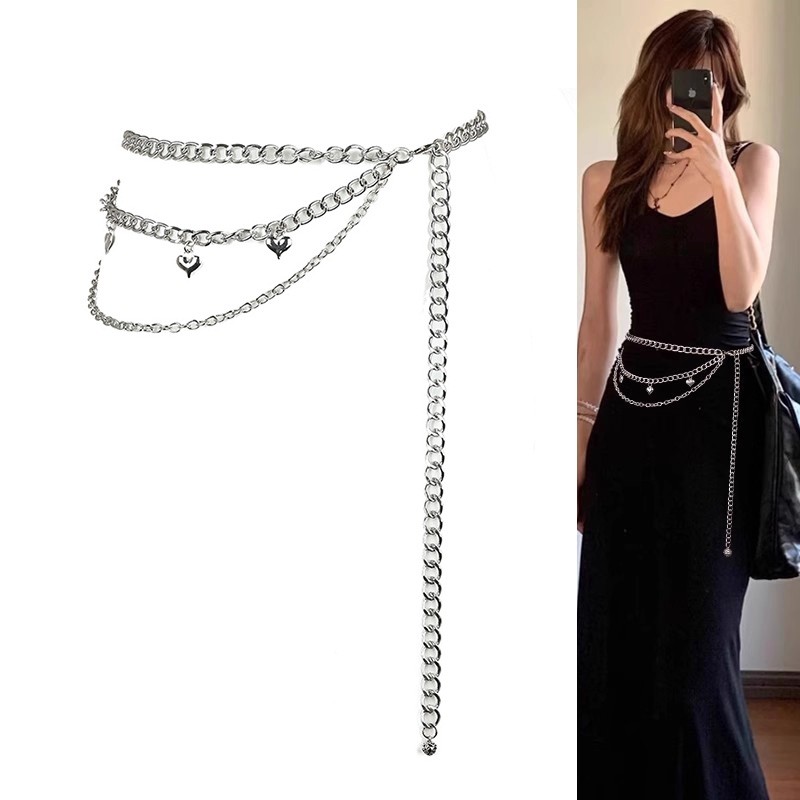 银色细腰链配饰女复古辣妹腰带配牛仔裤y2k链条皮带装饰连衣裙子