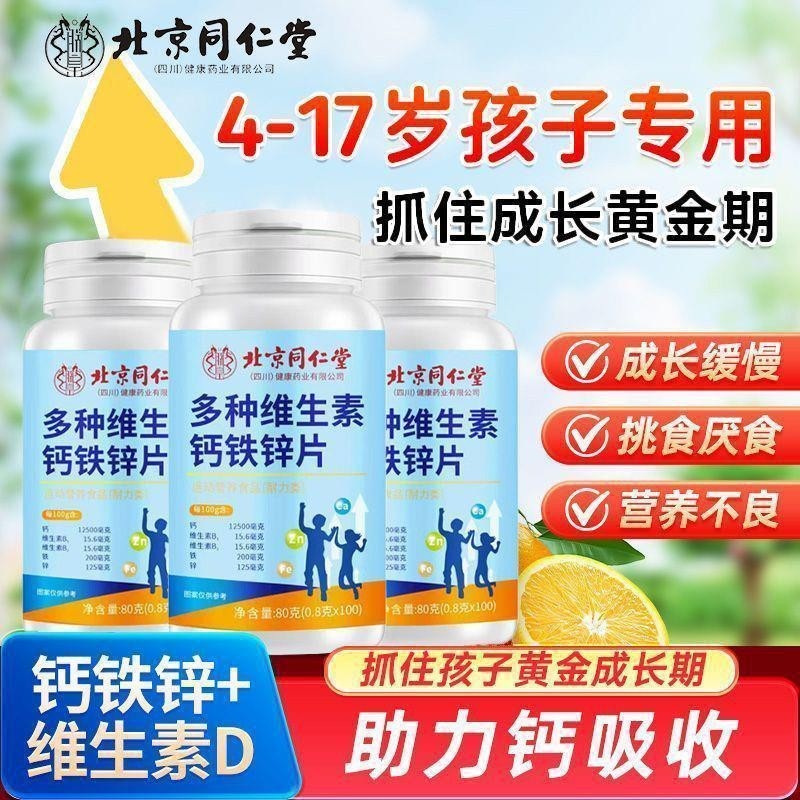 北京同仁堂多种维生素钙铁锌片儿童学生青少年成人钙片正品健康