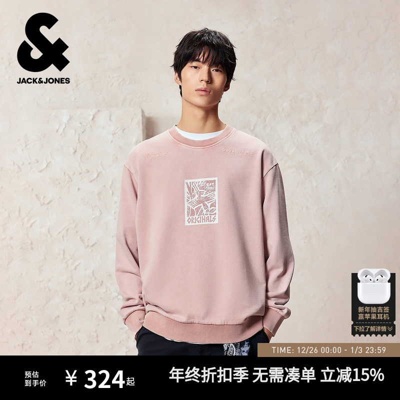 杰克琼斯男装秋冬卫衣新款纯棉字母刺绣长袖上衣225333129