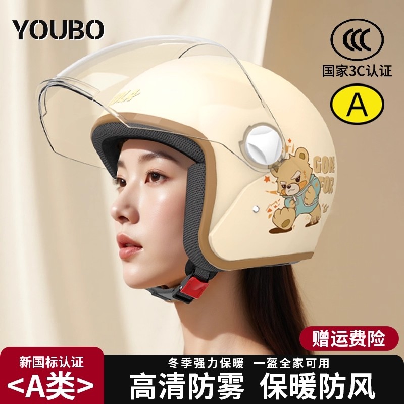 营缆头盔官方旗舰店3c认证电动摩托车男女士半盔冬季保暖四季通用