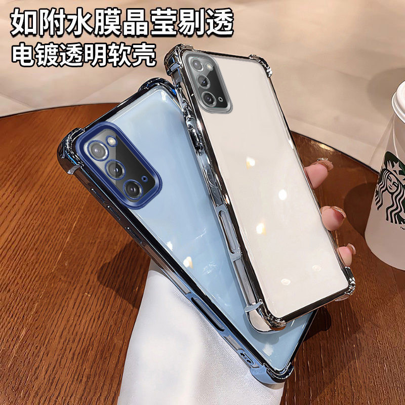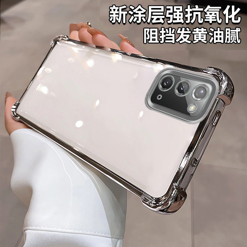 三星note20手机壳新款四角气囊硅胶防摔时尚镜头全包软壳适用note20ultra高级感强抗氧化简约电镀透明手机壳