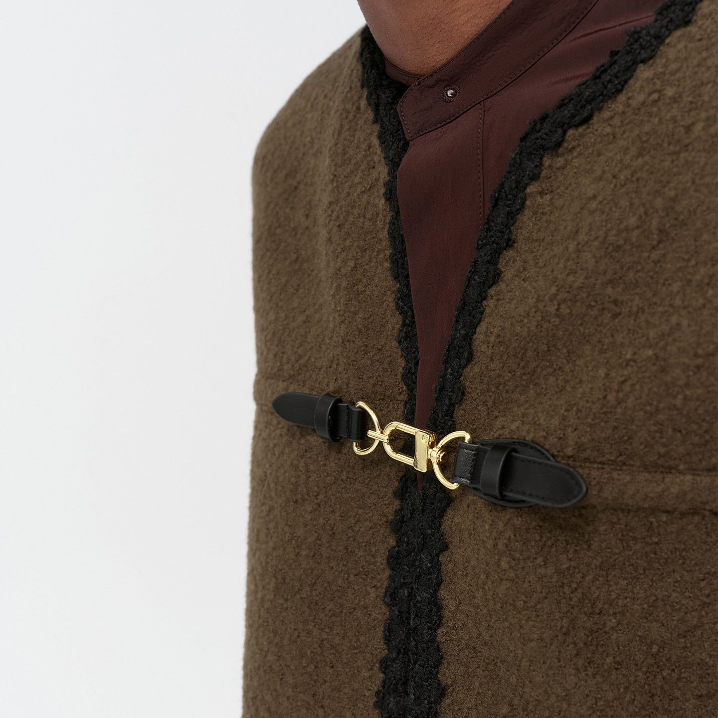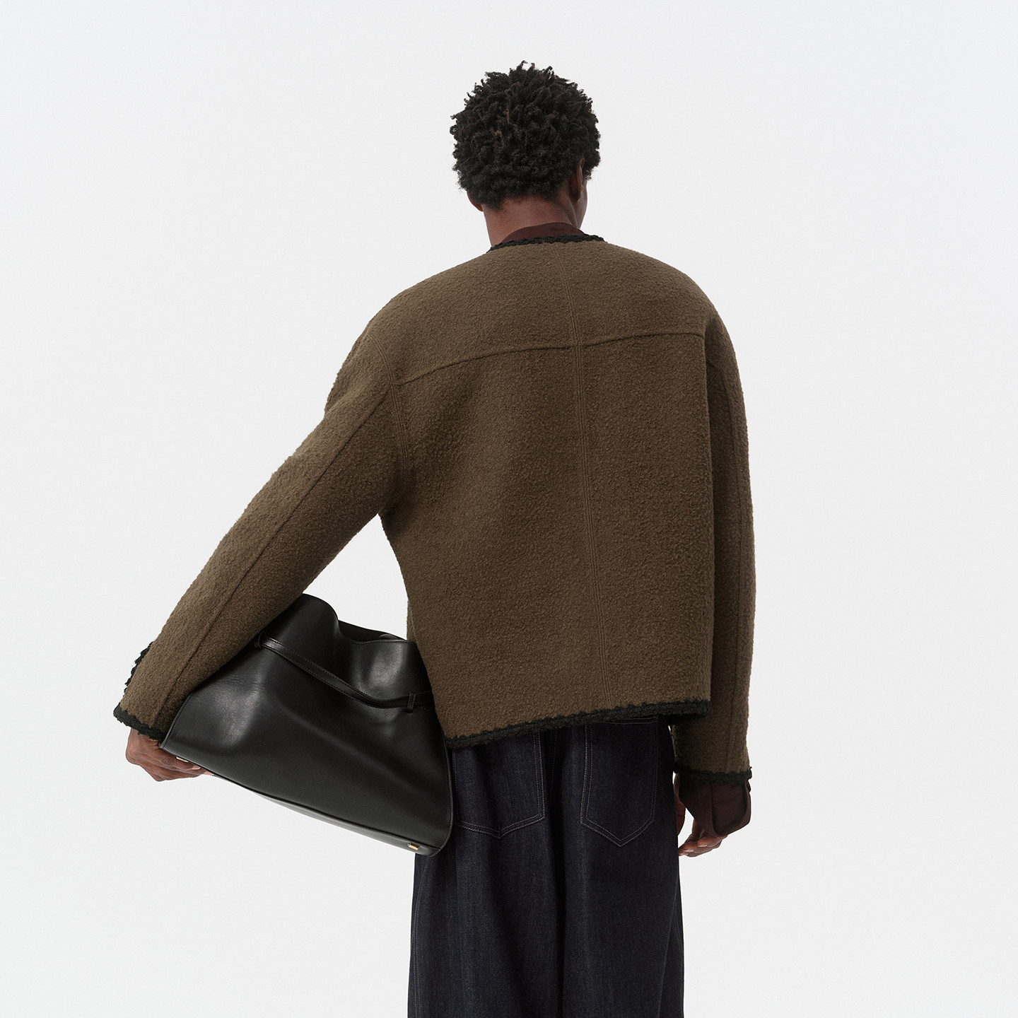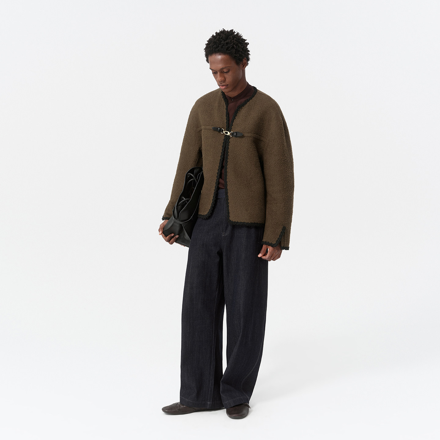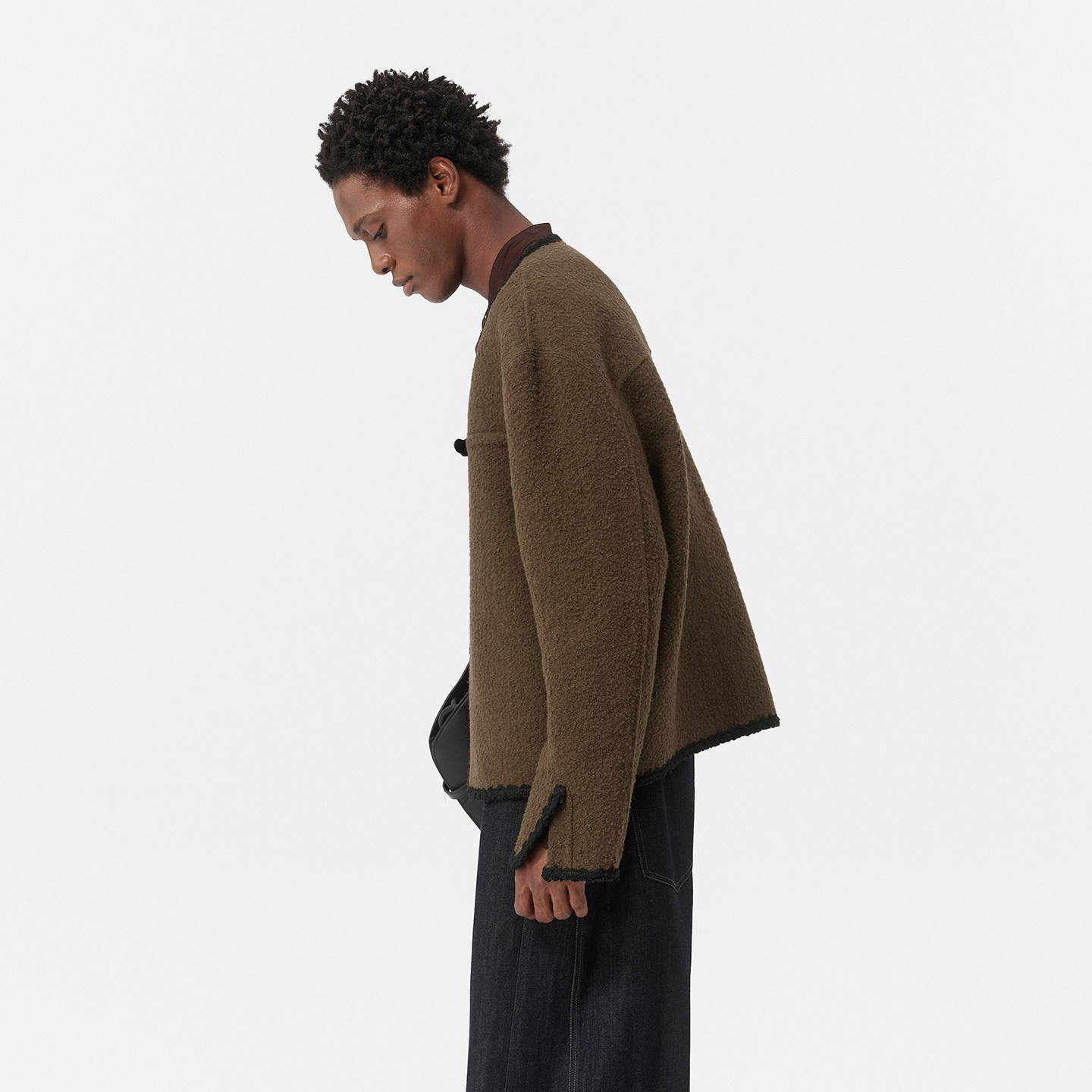 DUPU杜朴 羊毛混马海毛圈圈纱双面呢短款大衣 小香风织带包边外套