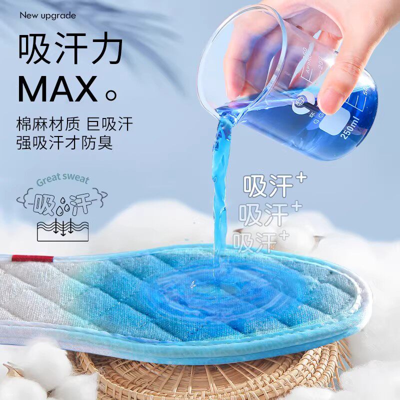 5双艾草除臭鞋垫男女透气吸汗防臭加厚亚麻纯棉手工夏季舒适软底