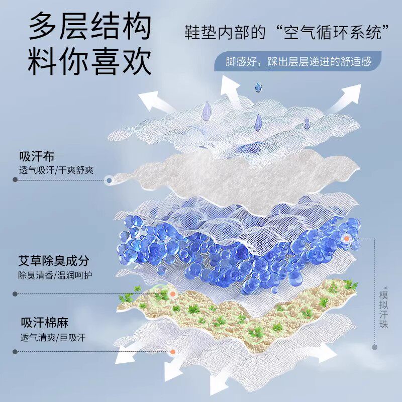 步云鞋垫男士吸汗防臭透气女艾草除臭留香软底运动减震踩屎感保暖