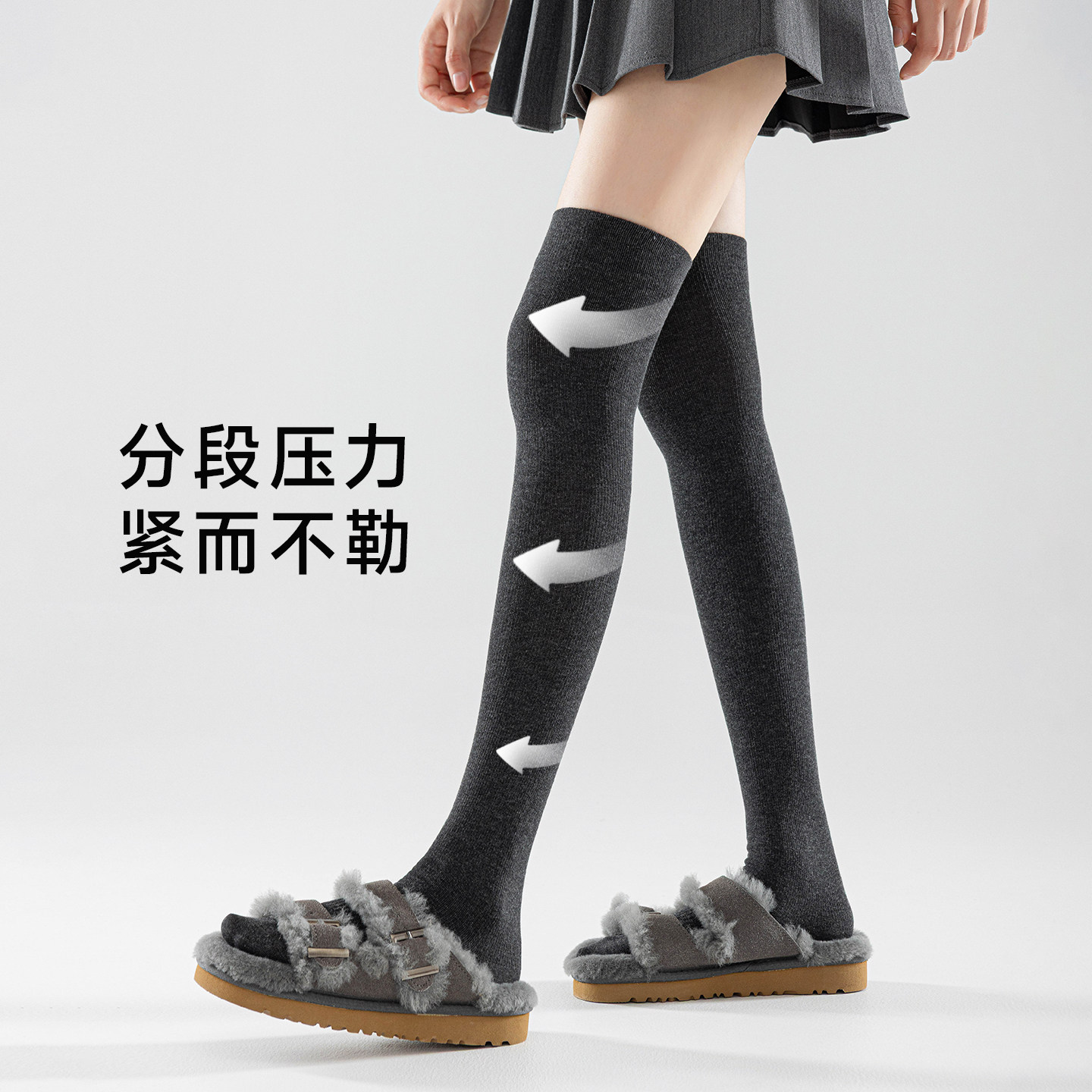 压力小腿袜灰色女薄款春夏季强压瘦腿纯棉jk袜子高筒过膝袜长筒袜