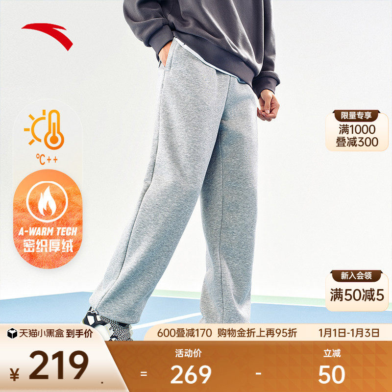 安踏加绒运动长裤男冬季美式复古宽松休闲直筒运动裤子152448302N