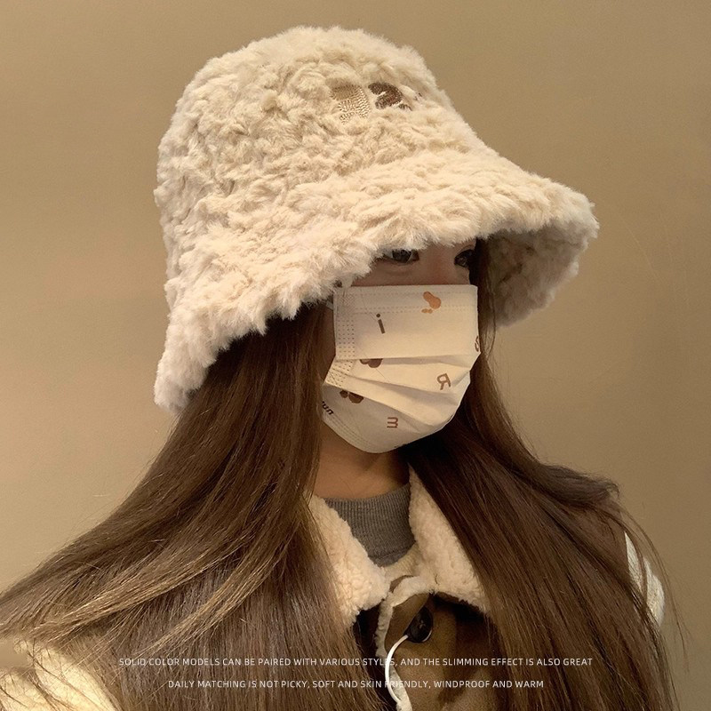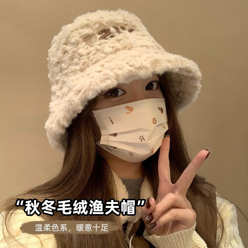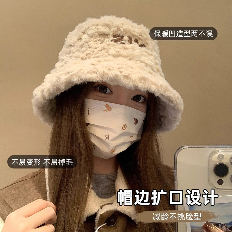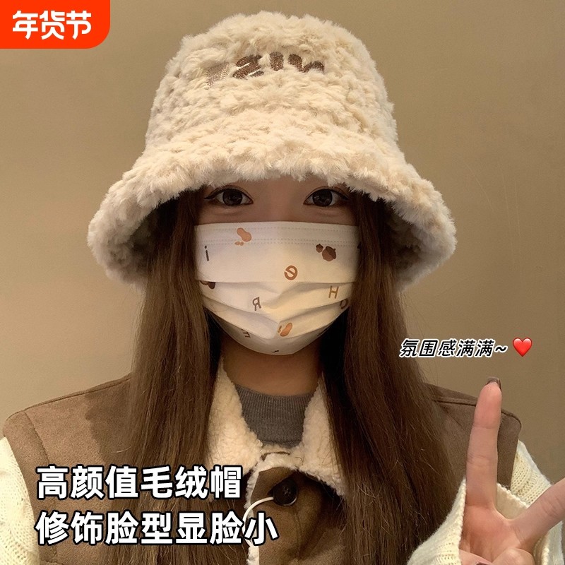 毛绒渔夫帽女秋冬季大头围显脸小帽子保暖加绒盆帽2025新款