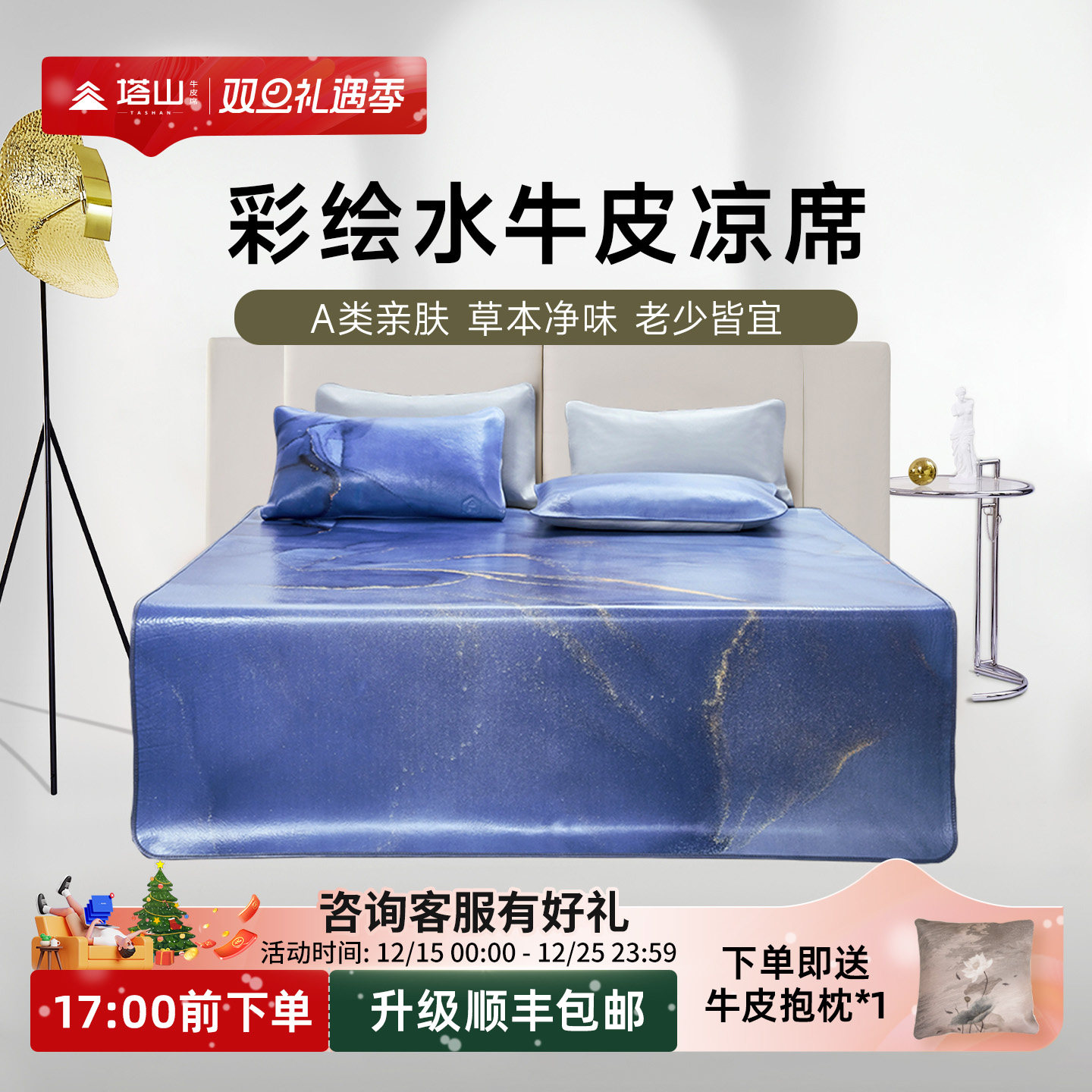 塔山牛皮凉席头层水牛皮真皮席子皮凉席彩绘高端软席加厚皮席正品