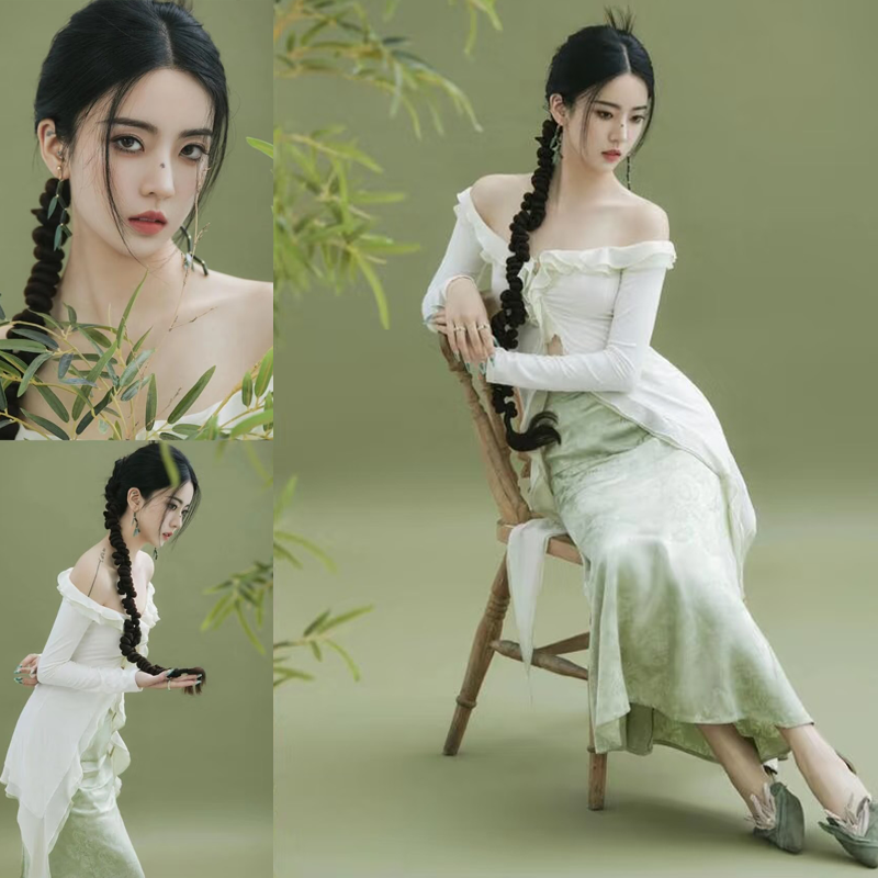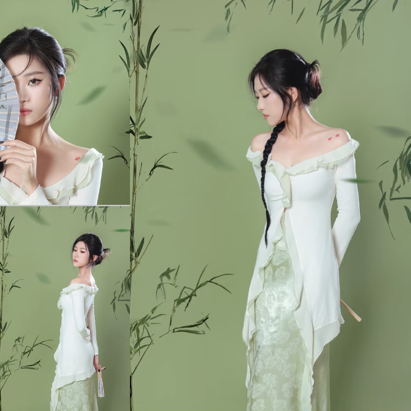 绿色肌理纹理渐变色写真喷绘直播间摄影油画布影楼婚纱拍照背景纸