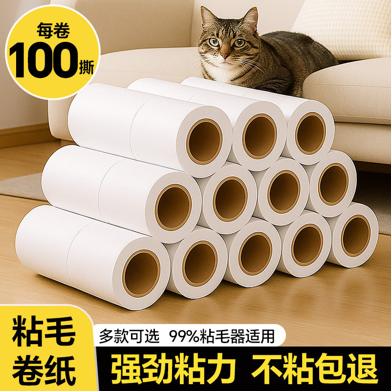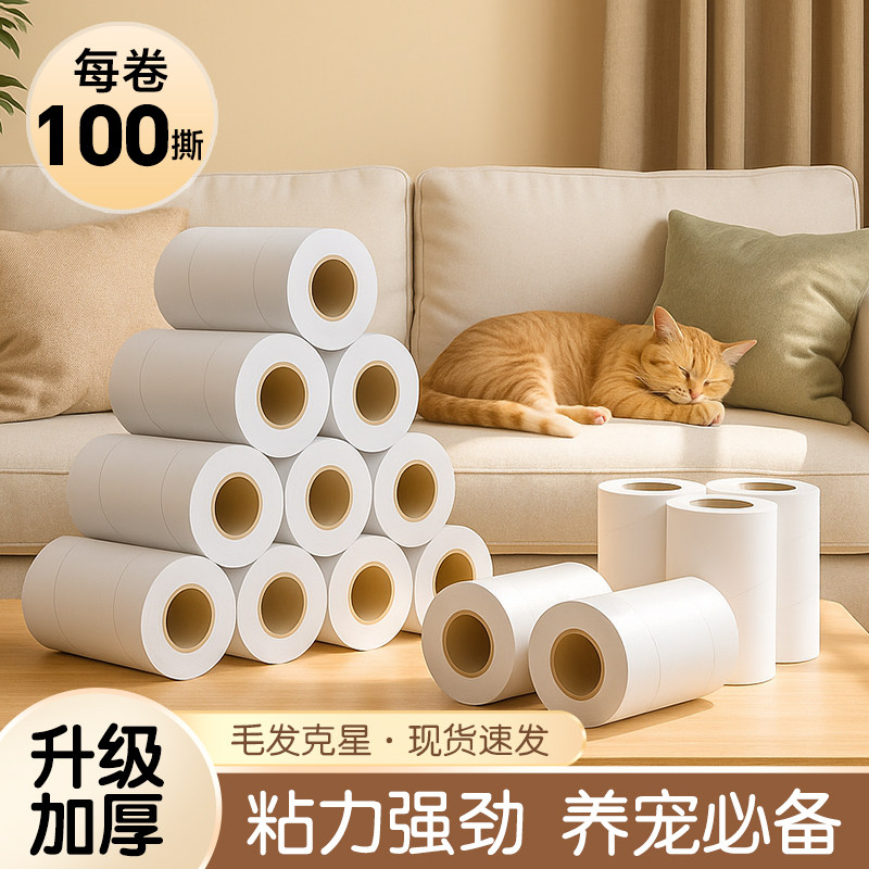 家用粘毛滚除头发刷衣服黏吸纸卷粘毛器滚筒可撕替换卷纸沾毛神器