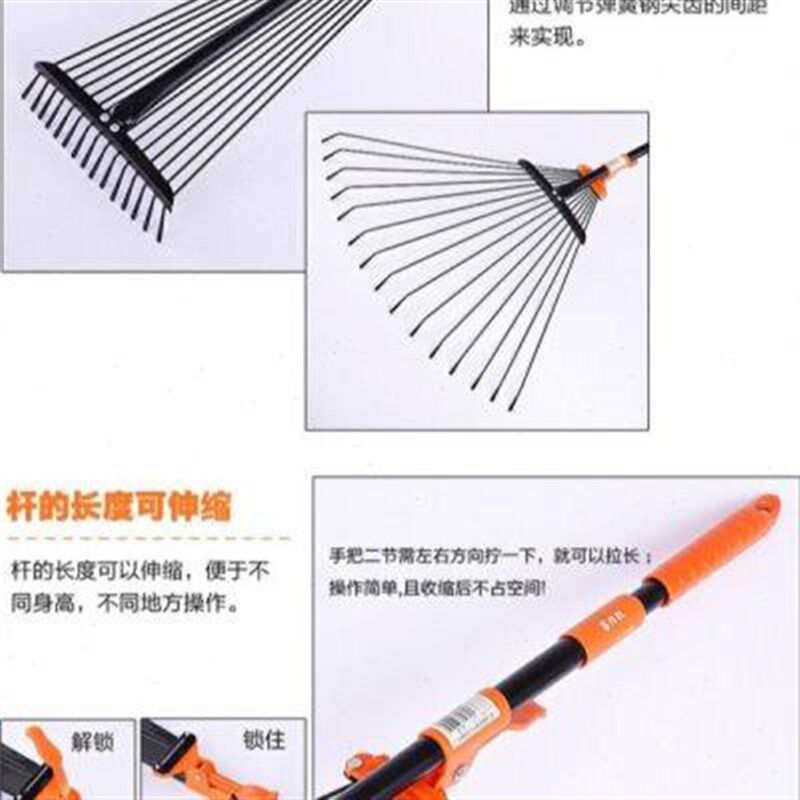 15齿双伸缩大搂草耙收拾落叶草坪杂物耙园艺工具铁扣耙子园林工具