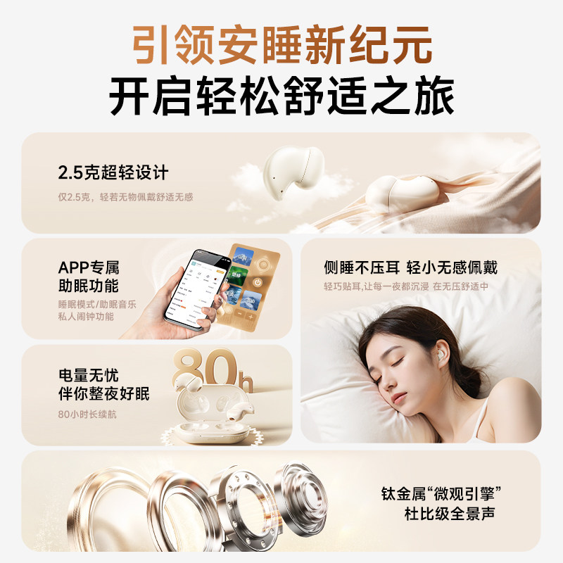 睡眠耳机助眠专用无线蓝牙降噪入耳式侧睡不压耳隔音睡觉2026新款