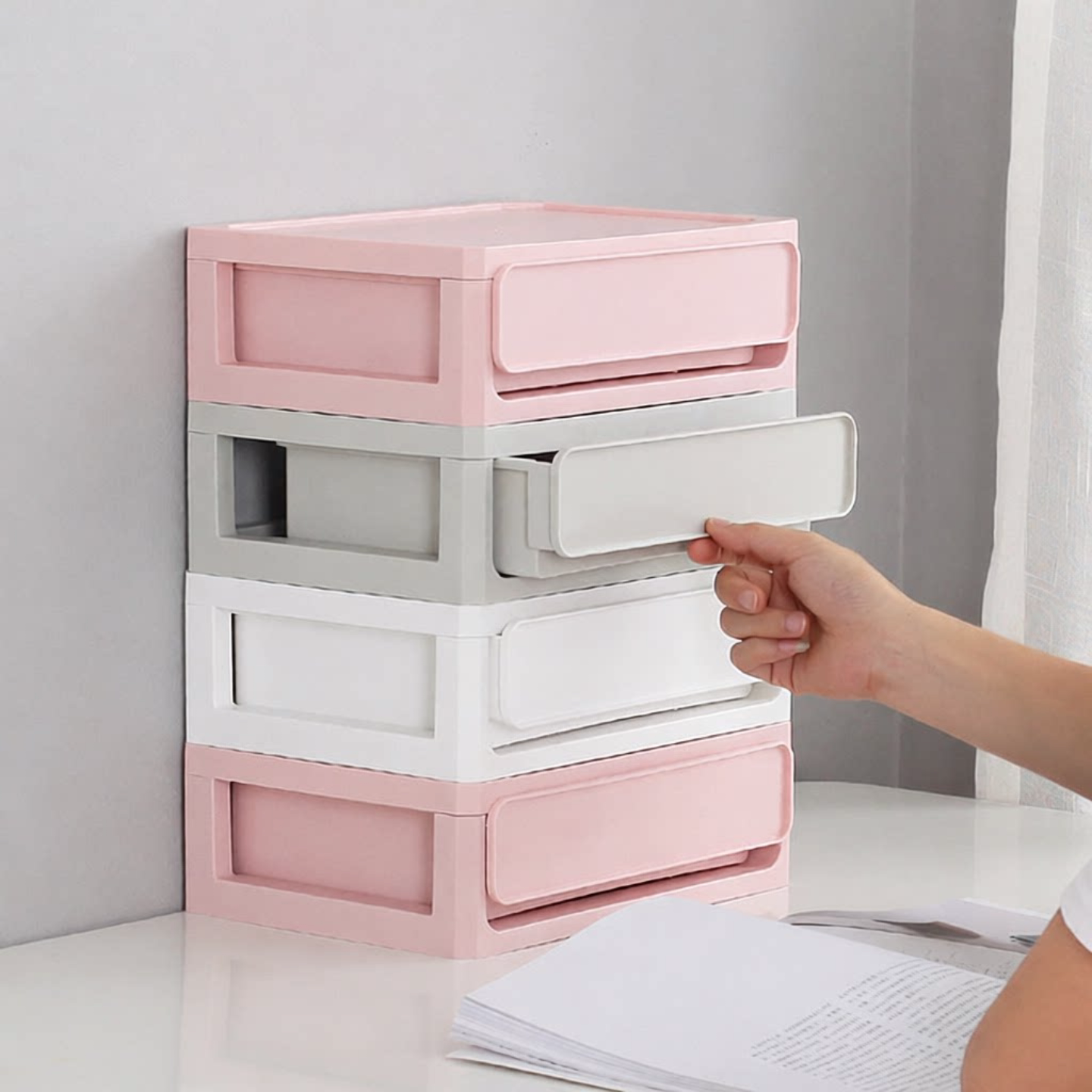 桌面收纳盒子抽屉式文件柜学生宿舍杂物储物盒防尘可叠省空间桌面文件柜