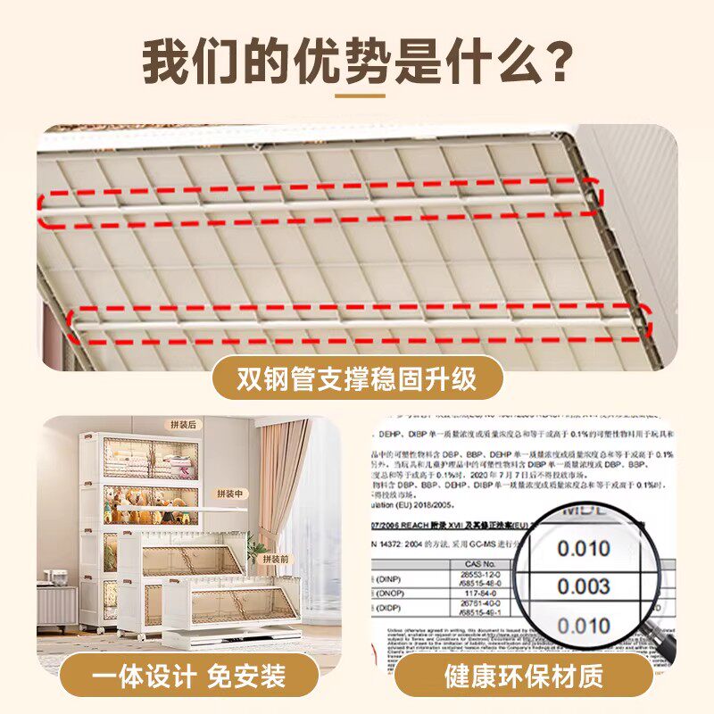 免安装收纳柜可折叠储物柜家用多层塑料置物柜衣物收纳箱移动超大