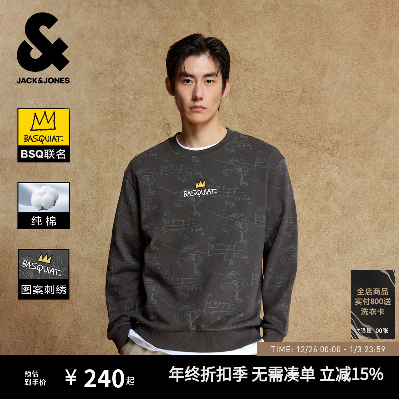【BSQ联名】杰克琼斯25秋季新款男装宽松卫衣外套满印刺绣情侣风
