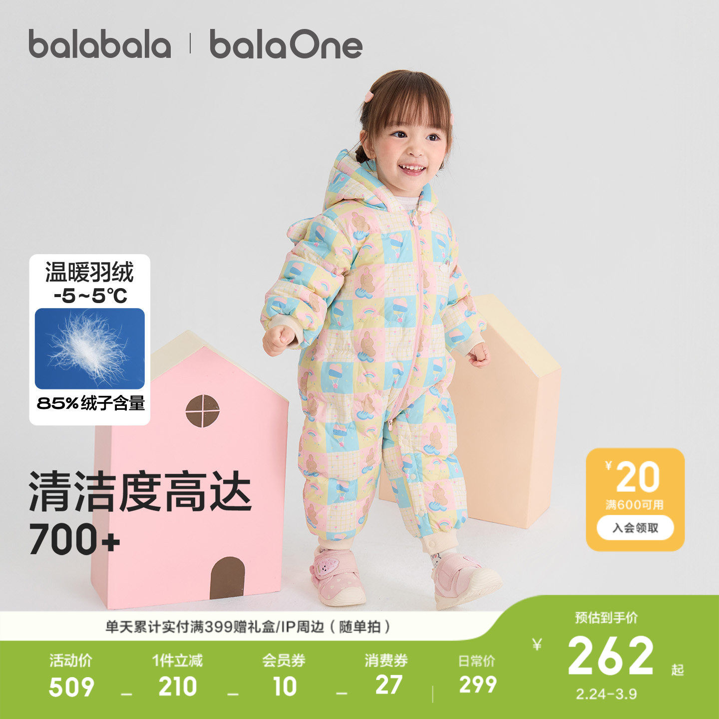 巴拉巴拉婴儿羽绒连体衣女宝宝羽绒服2026新款冬装抱衣爬服甜美萌