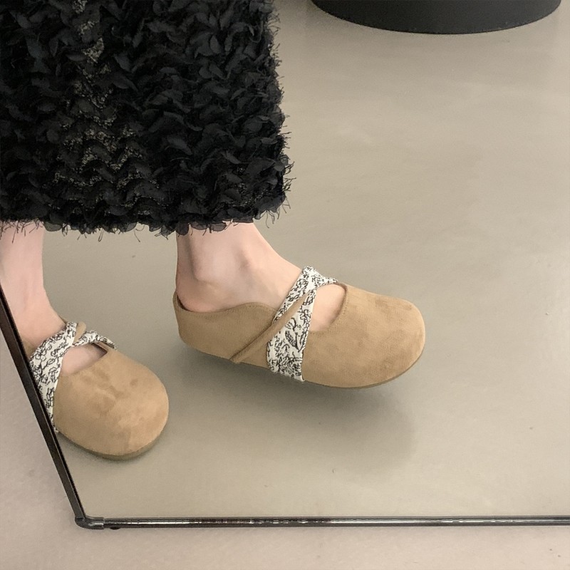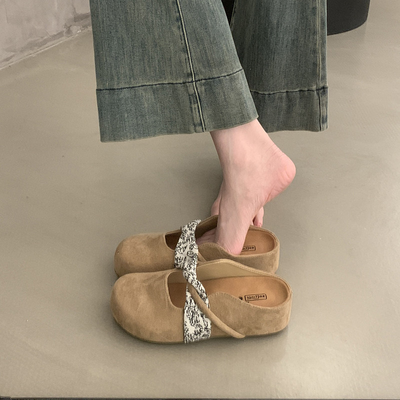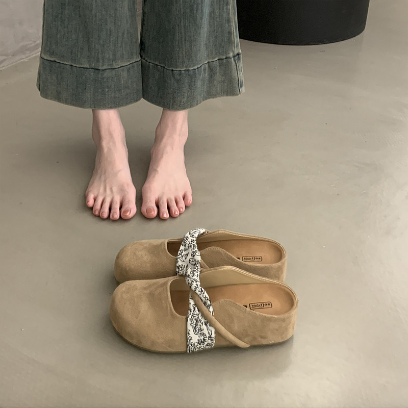 真皮包头拖秋季2025年新款勃肯鞋圆头拖鞋平底外穿休闲半拖懒人鞋