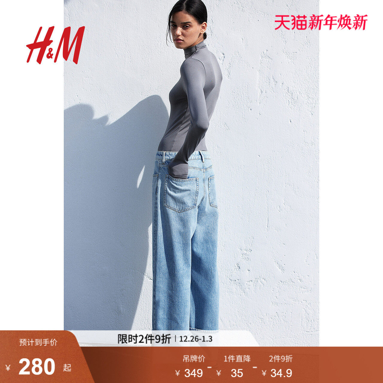 HM女装牛仔裤冬季时尚休闲气质宽松低腰慵懒阔腿牛仔裤1237437