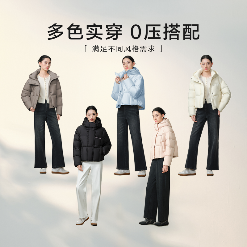 【鞠婧祎同款】鸭鸭2025年冬新款百搭短款女士纯色立领羽绒服外套