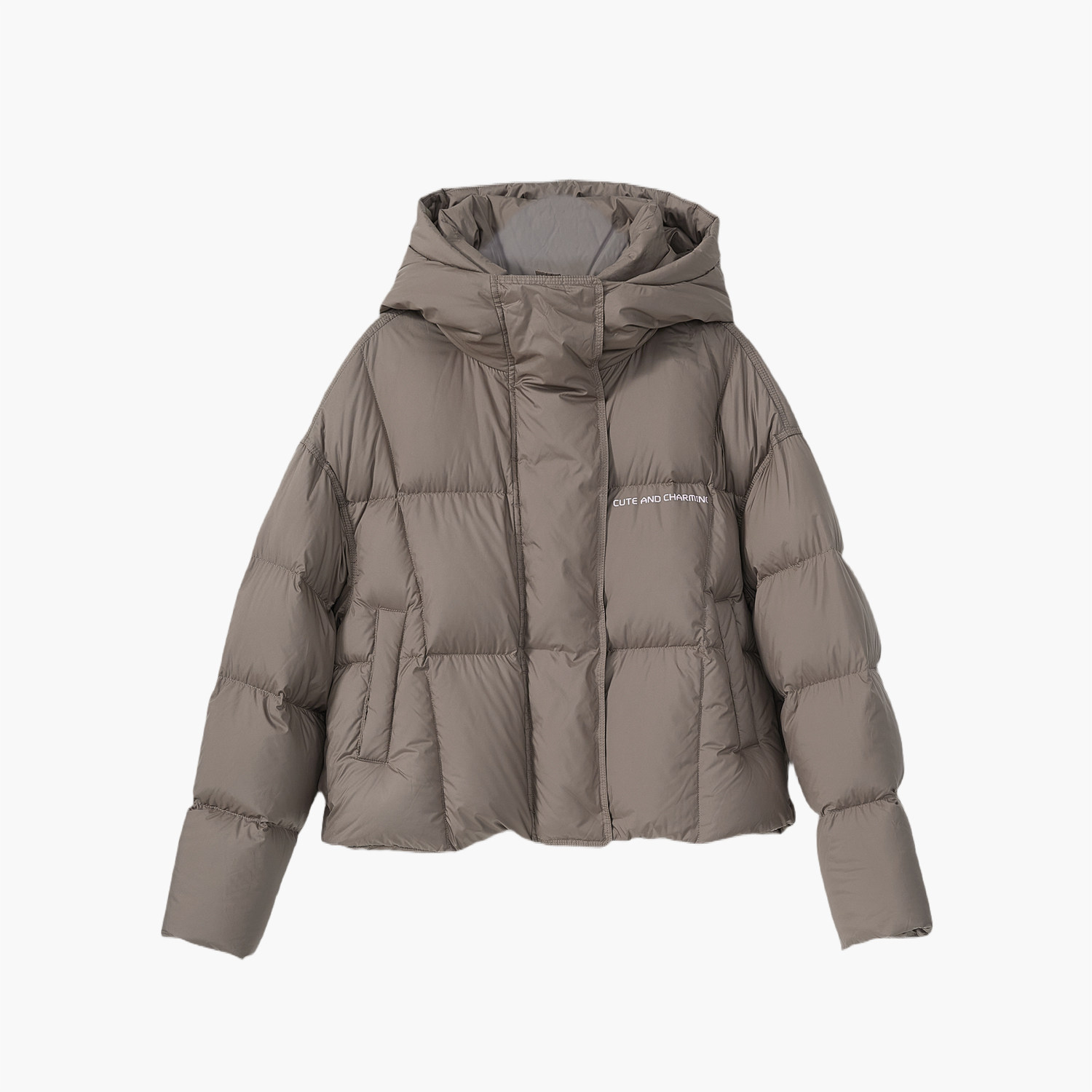 爱居兔鹅绒连帽短款羽绒服女2025年冬季新款小个子轻量保暖面包服