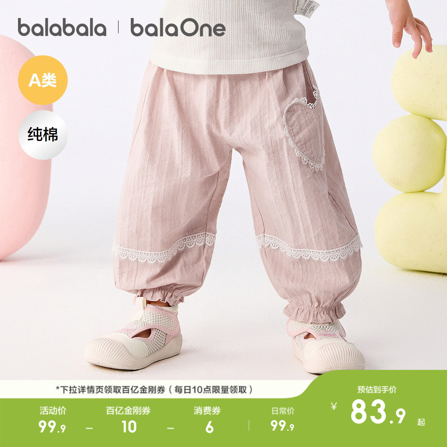 【balaOne】巴拉巴拉宝宝裤子婴儿防蚊裤女童2026新款夏季纯棉萌