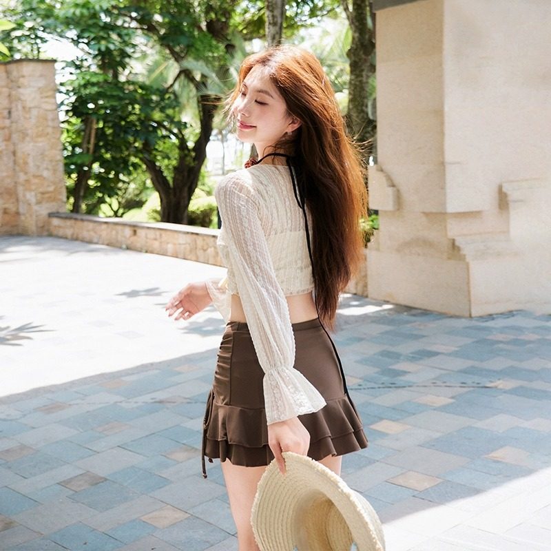 亦美珊泳衣女分体泡温泉长袖防晒海边度假三件套装高级感遮肉显瘦