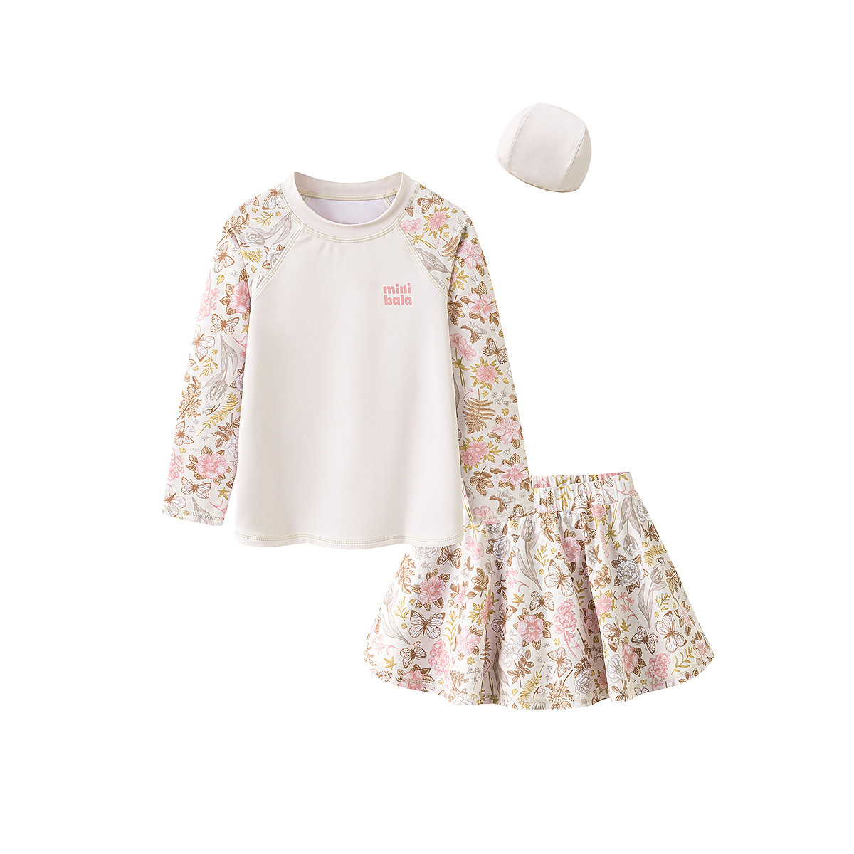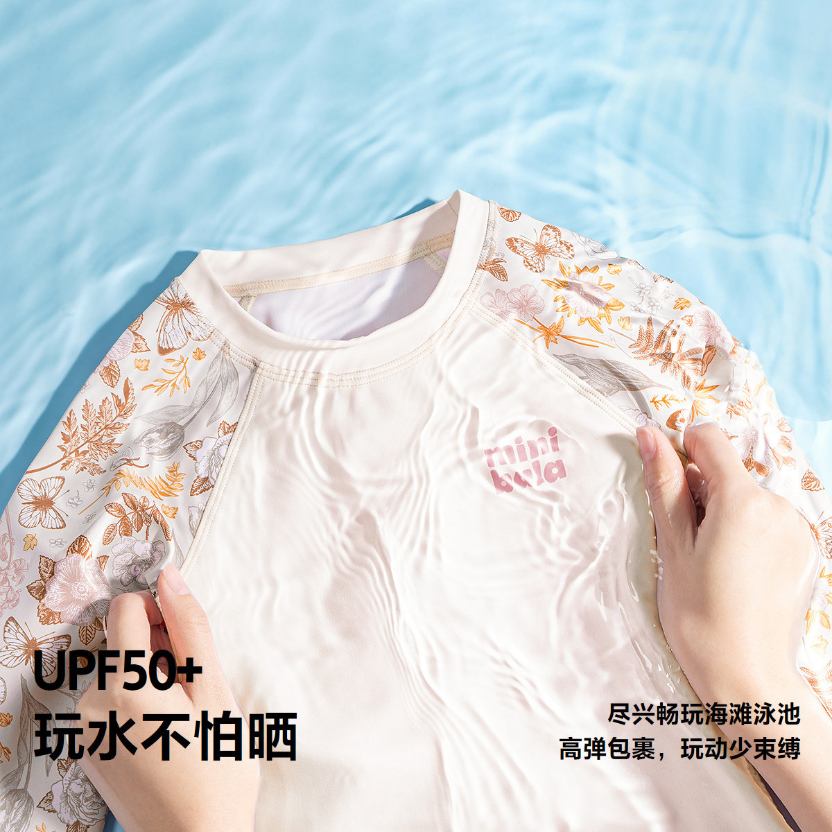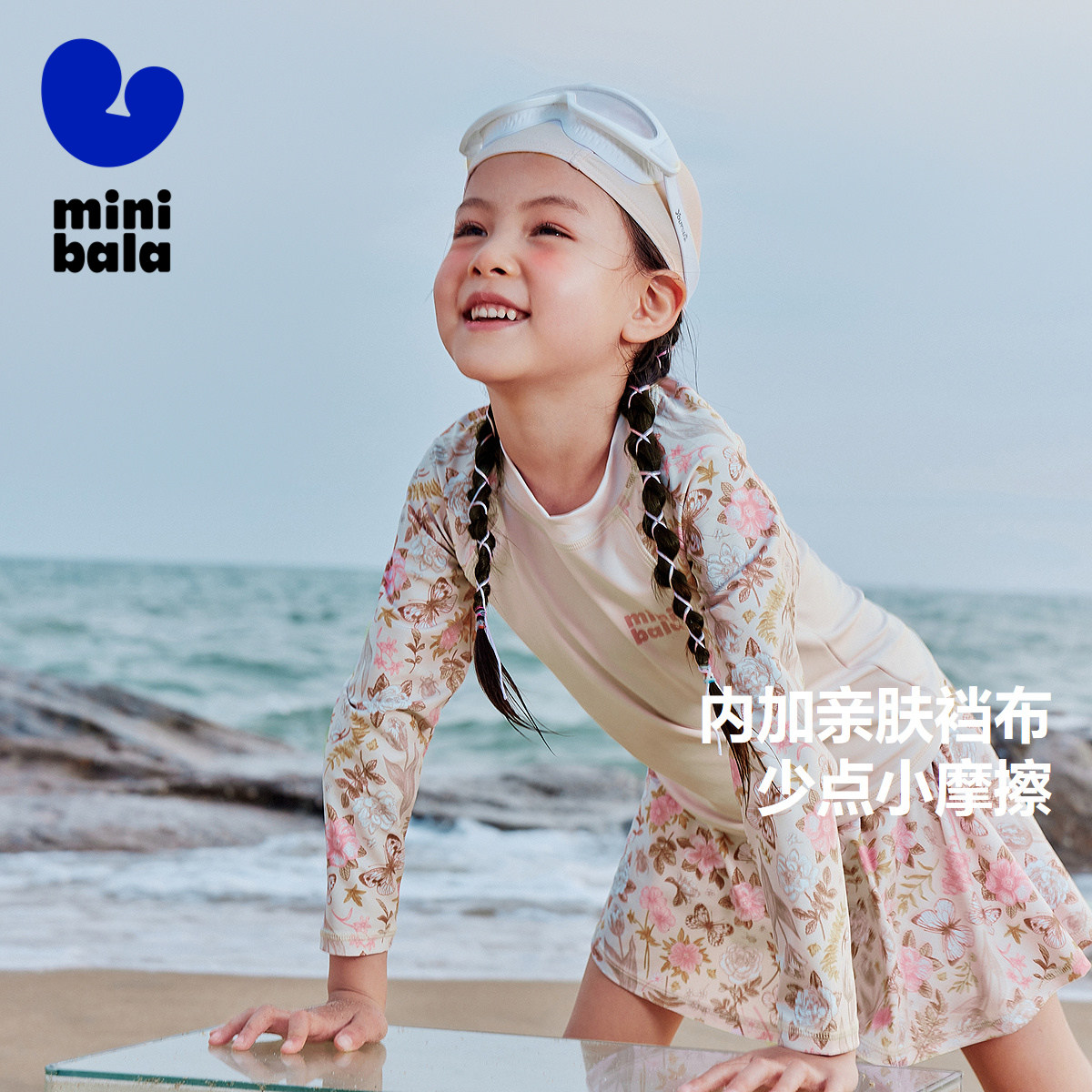 【UPF50+】迷你巴拉巴拉女童游泳衣防晒高弹亲肤分体长袖裙裤泳装