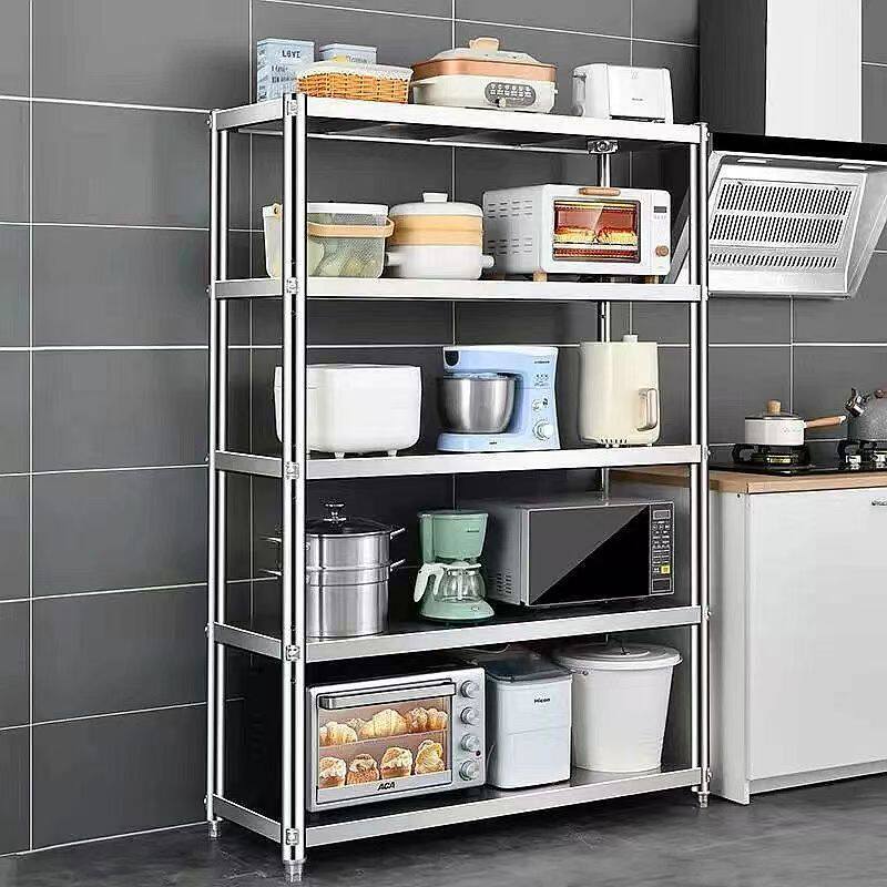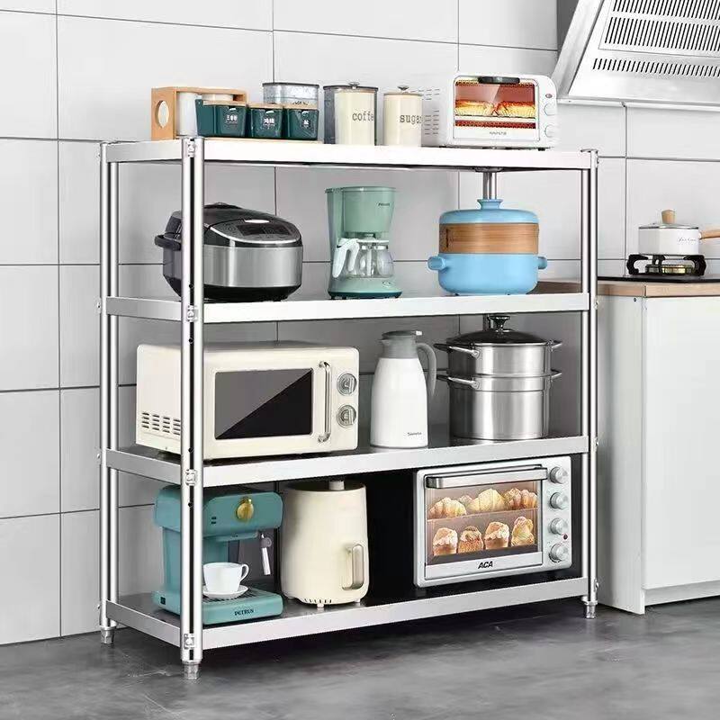 不锈钢厨房置物架微波炉层架橱柜用品收纳架子多层落地储物柜货架