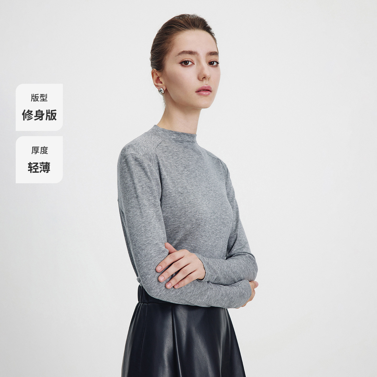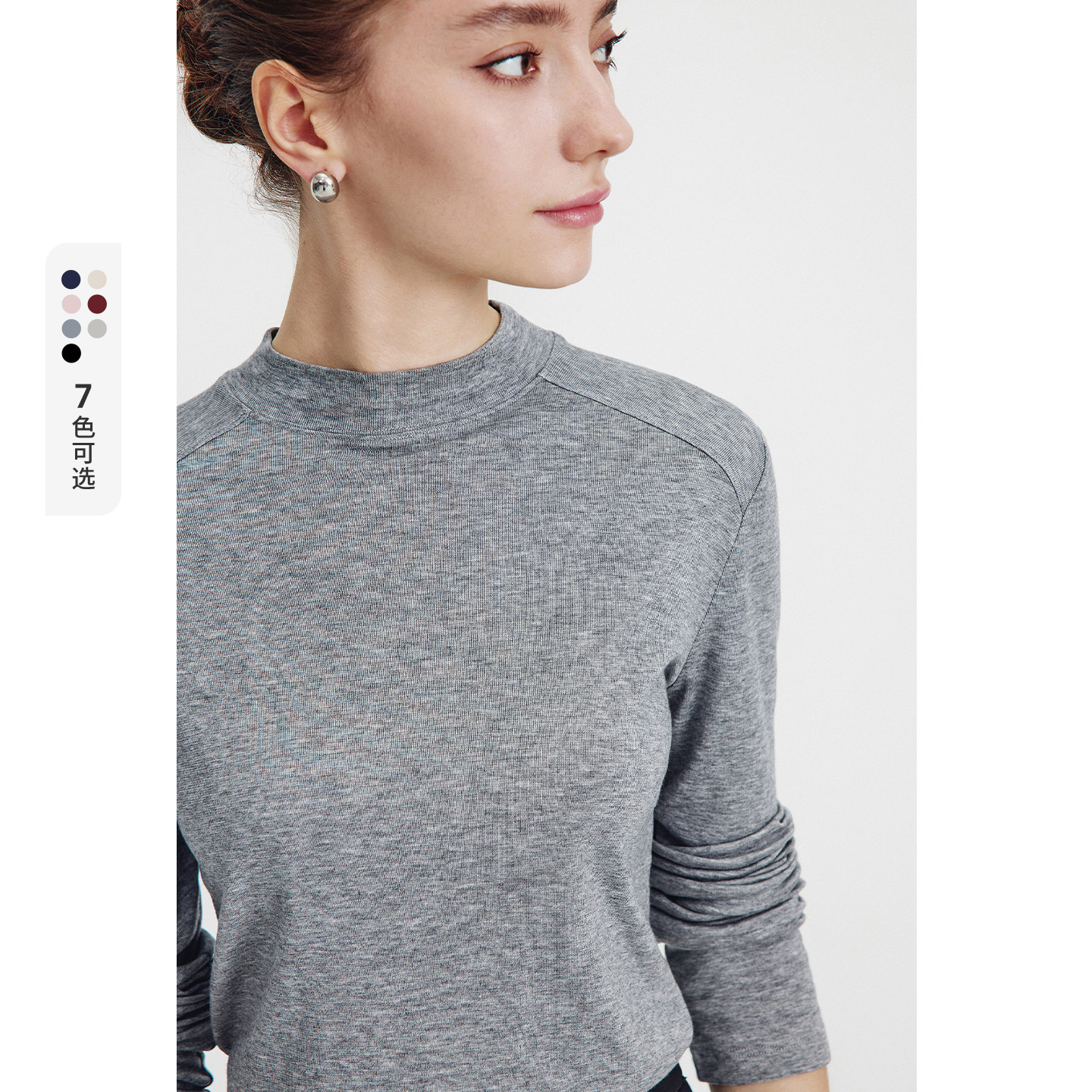 widelia十三行老板娘冬正肩小立领半高领打底衫弹力长袖T恤女9585