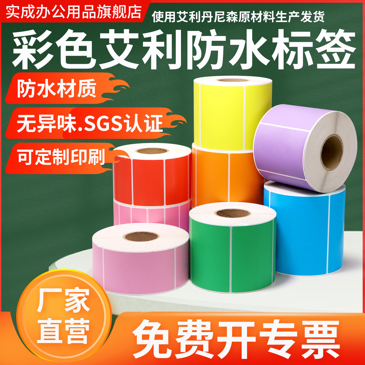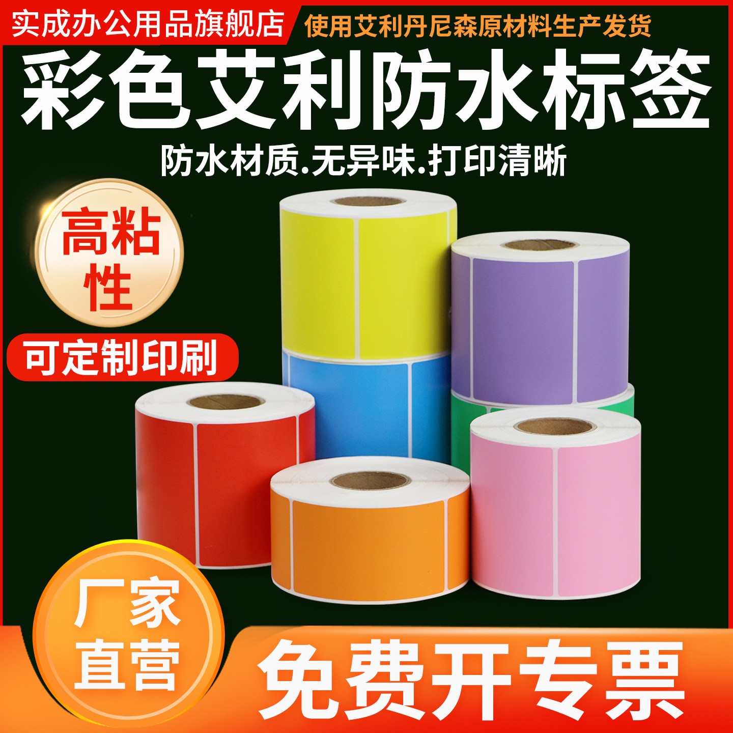 彩色防水合成纸PP不干胶标签条码打印纸卷装空白 红 黄 蓝 绿 粉 橙 紫产品日期合格证箱贴防水耐撕定制尺寸