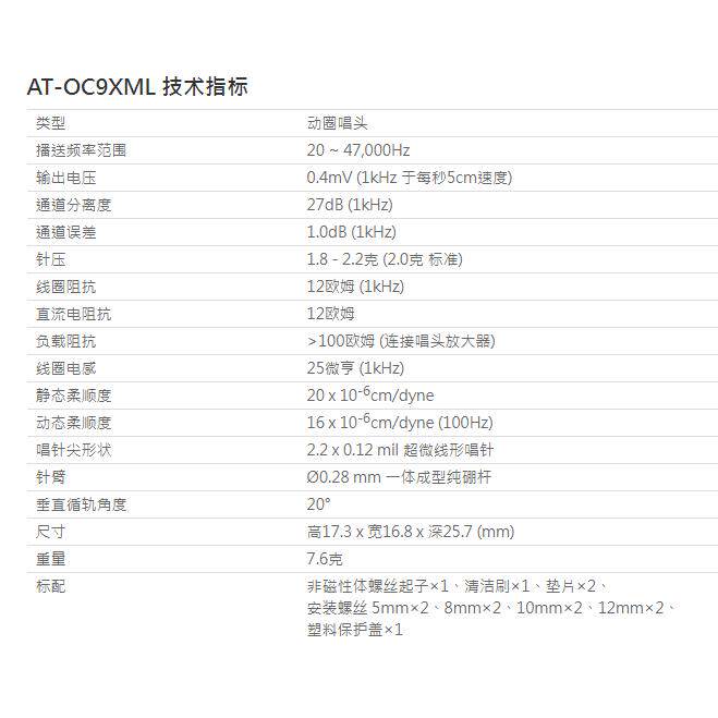 现货日本AuidoTechnica 铁三角OC9XML动圈唱头OC9X系列黑胶MC唱针