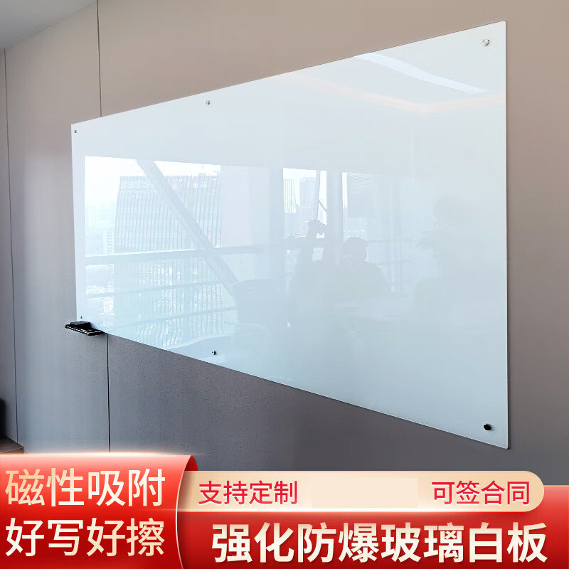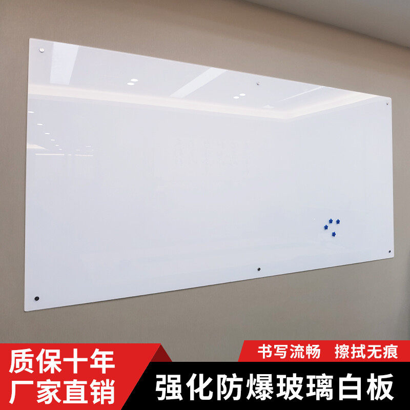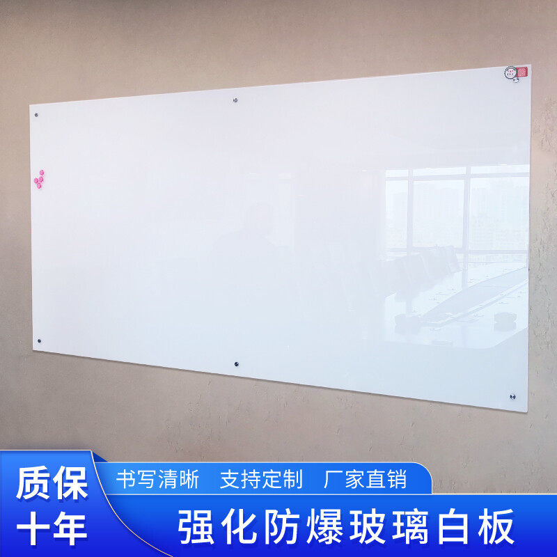 磁性钢化玻璃白板会议办公挂式写字板黑板培训教学记事画板烤漆钢化防爆超白玻璃板教室机构哑光白色