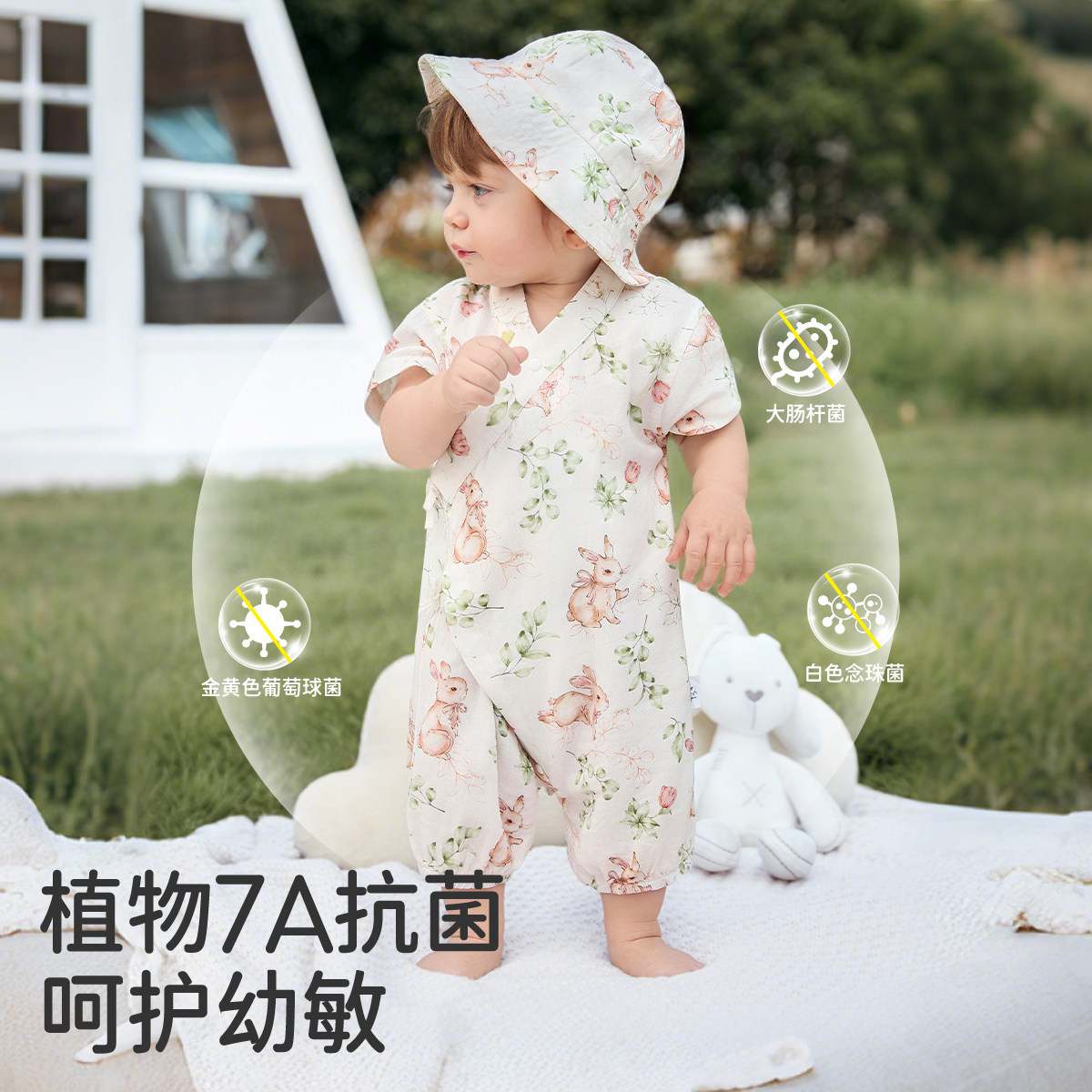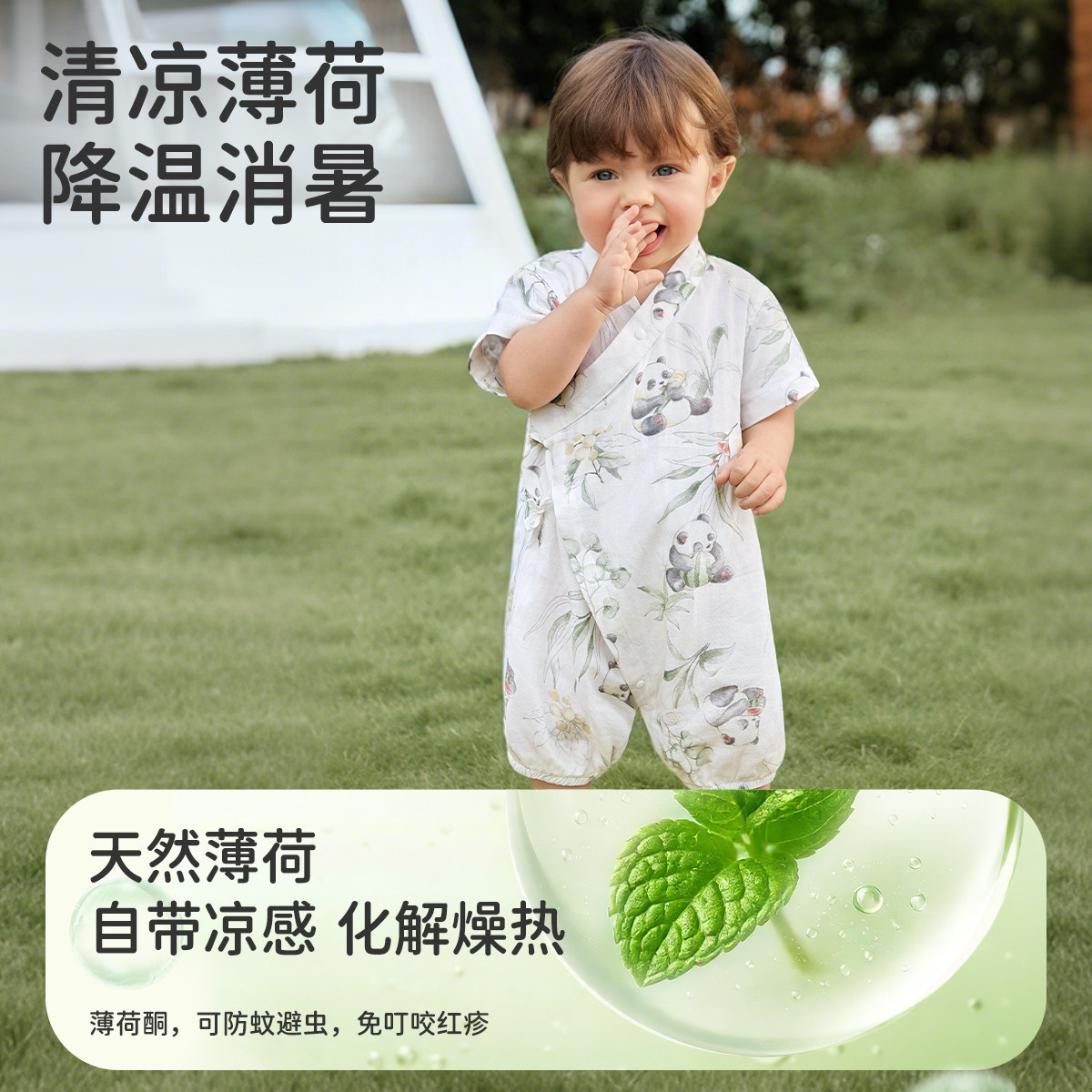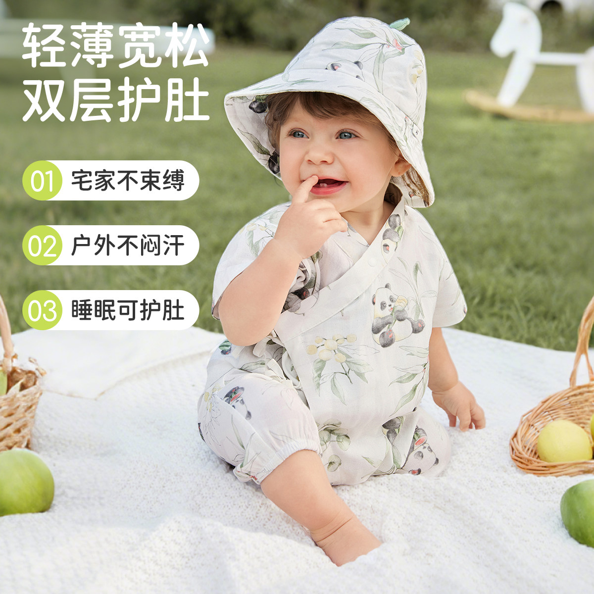 婧麒新生婴儿夏季薄款天竹短袖连体衣满月男女宝宝外出偏开和尚服