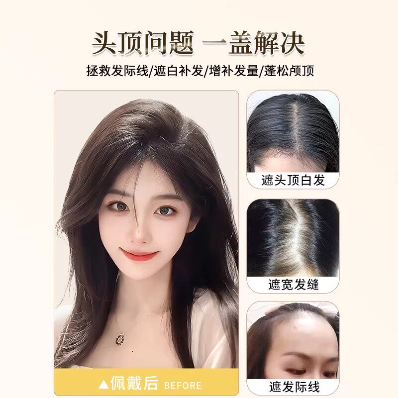 假发女片头顶增发量蓬松仿真发颅顶遮白发自然隐形无痕刘海补发片