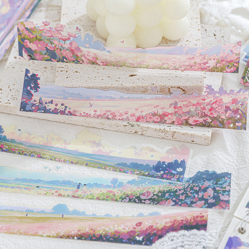自然之歌油画风景PET长条贴纸ins风复古装饰手帐diy打底造景贴画