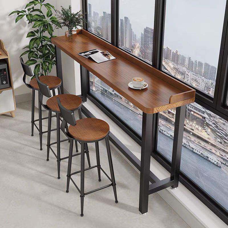 简约阳台吧台桌家用简约实木长条桌高低脚长桌子高脚桌椅