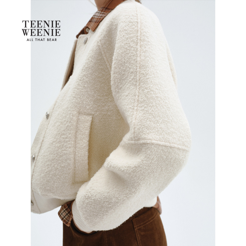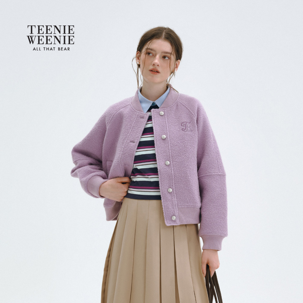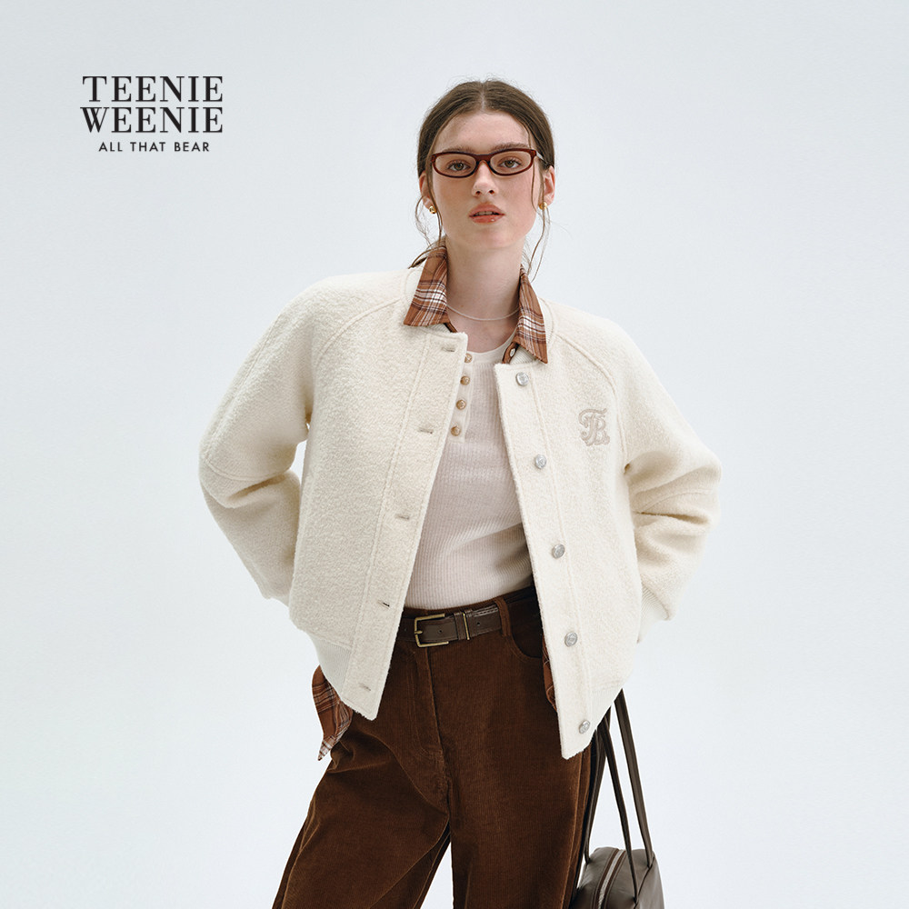 TeenieWeenie小熊女装毛呢大衣2025冬季款舒适宽松休闲棒球款外套