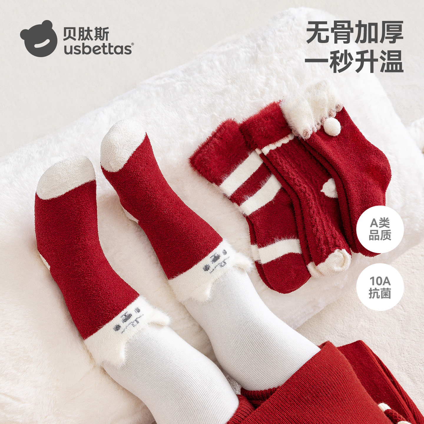 贝肽斯宝宝袜子新年秋冬保暖周岁满月百日红拜年中筒婴儿袜子红S