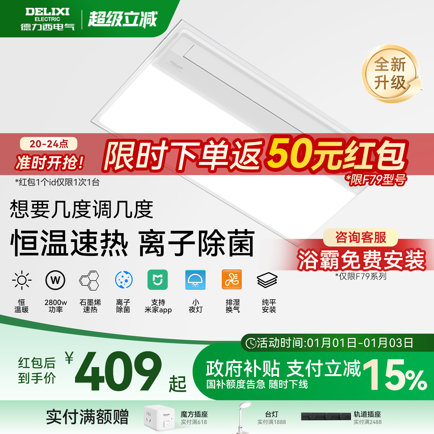 德力西风暖浴霸恒温速热 离子除菌 双核强暖