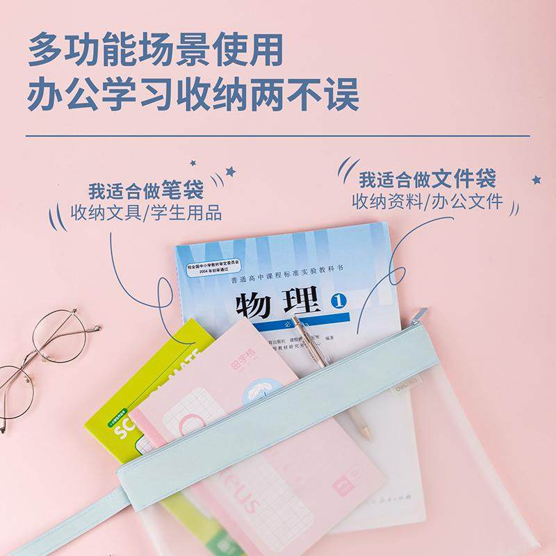 得力文件袋大容量防水拉链袋TPU学生试卷科目分类袋a4资料收纳袋