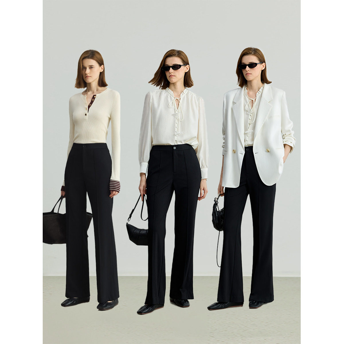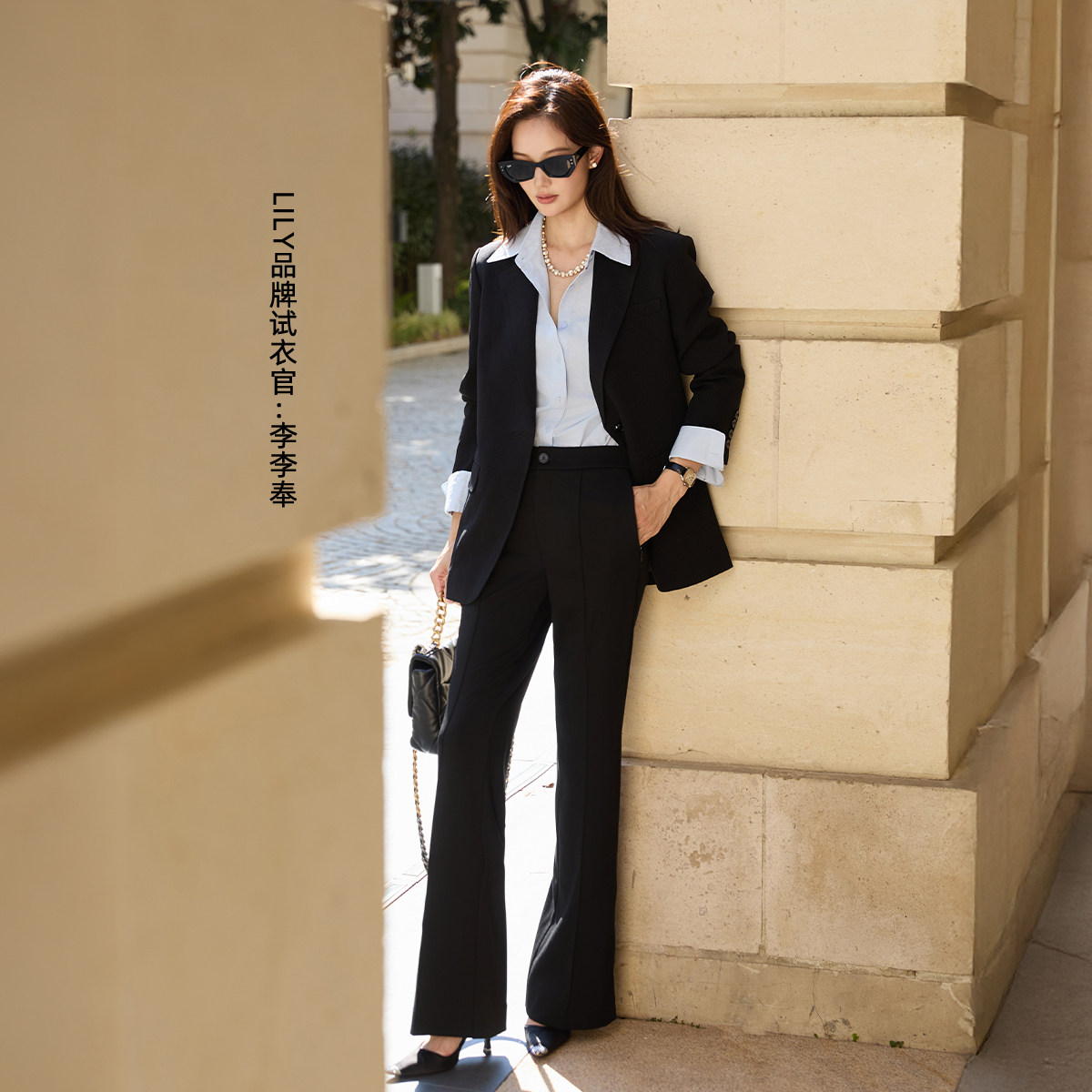 超模小黑裤LILY2026新款女装弹力修身微喇裤高腰黑色休闲长裤