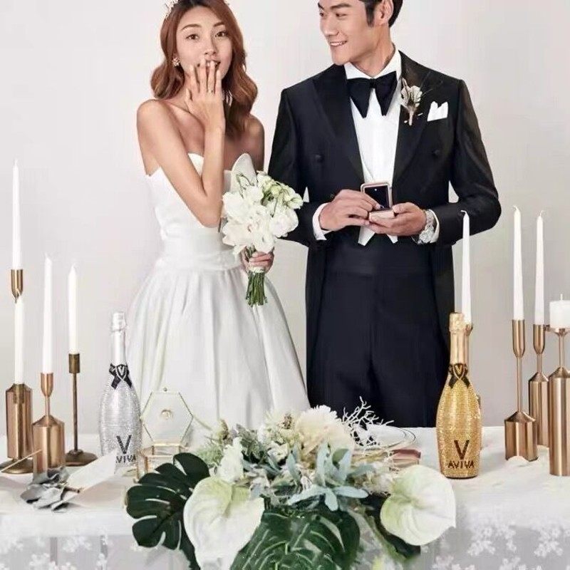 速发风婚纱摄影 森系旅拍具景道外 西式婚礼摆件 蛋欧金色糕式烛