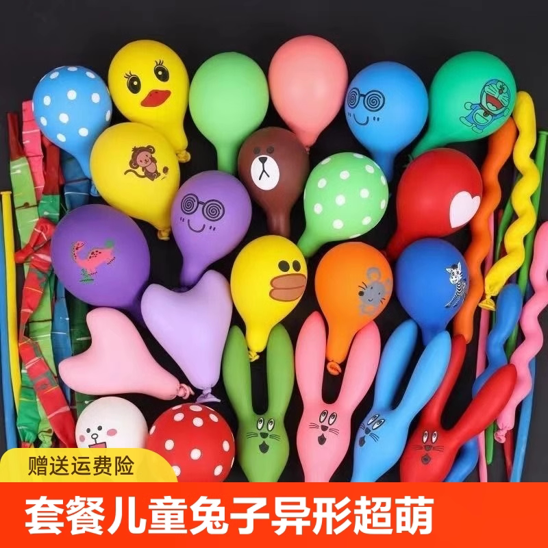 气球儿童无毒加厚异形多款兔子气球套餐卡通混装五颜六色生日气球