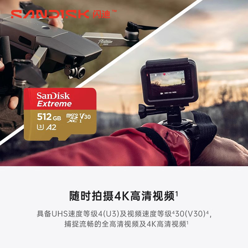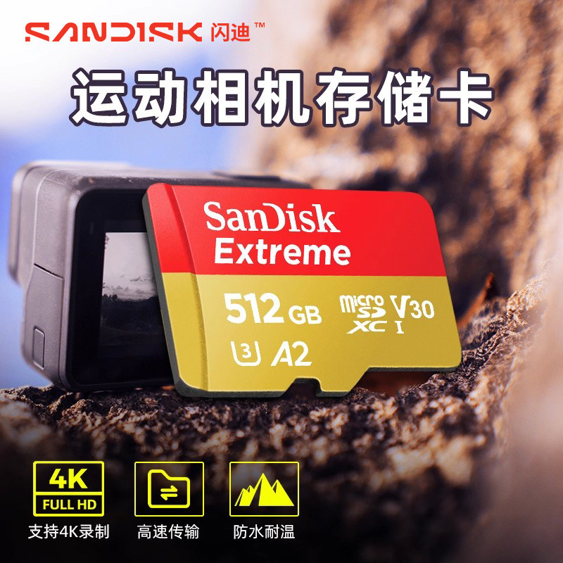 闪迪sd卡512g内存卡tf卡pocket3无人机gopro运动相机4k存储卡1tb
