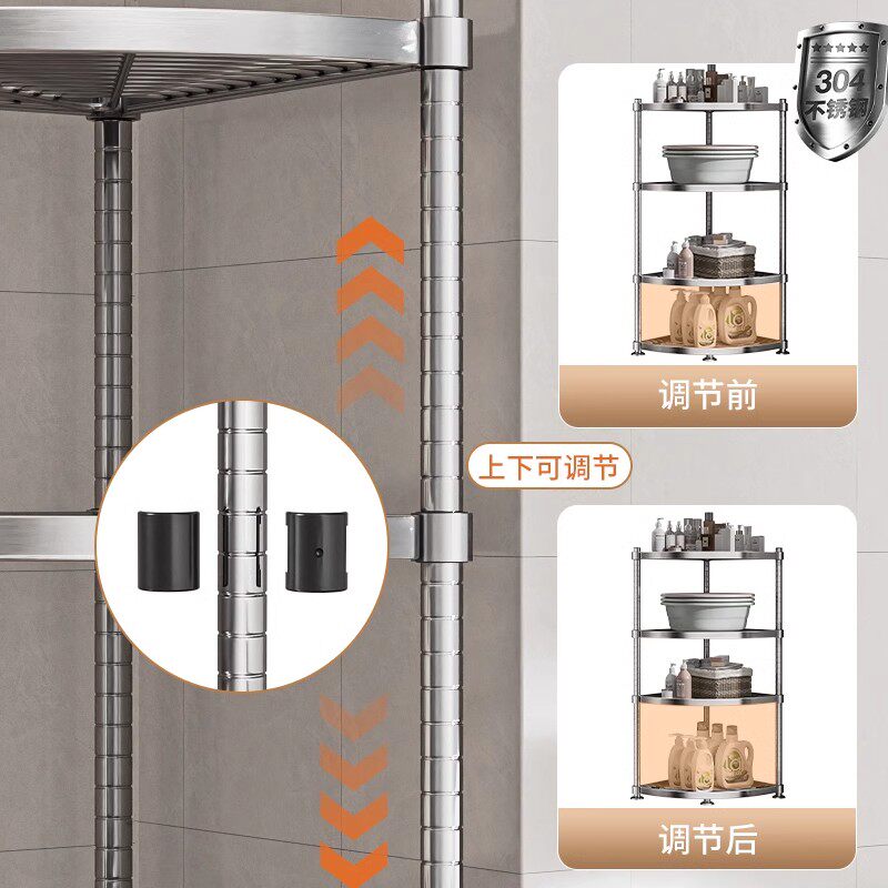 304不锈钢浴室置物架夹缝卫生间厕所三角架马桶转角落地收纳架子