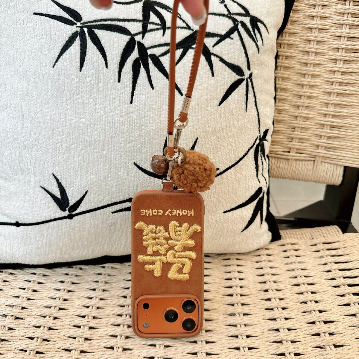 韩风ins风刺绣马上有钱适用于iPhone15苹果16手机壳17promax新款全包边防摔保护套14promax个性13小众潮16pro