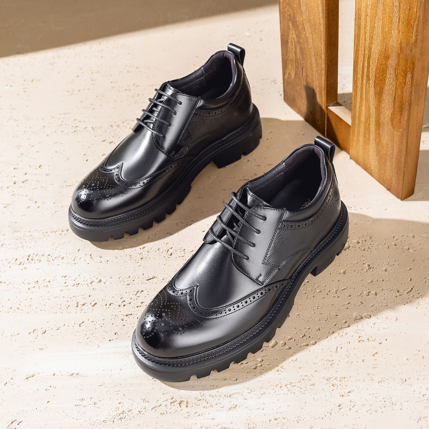奥康 男鞋2026春季新款布洛克正装皮鞋商务复古厚底内增高时尚单