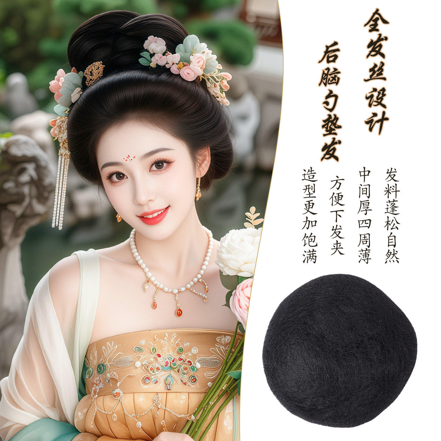化妆师专用汉服假发唐风盘发后脑勺西瓜发包古风新娘秀禾垫发造型