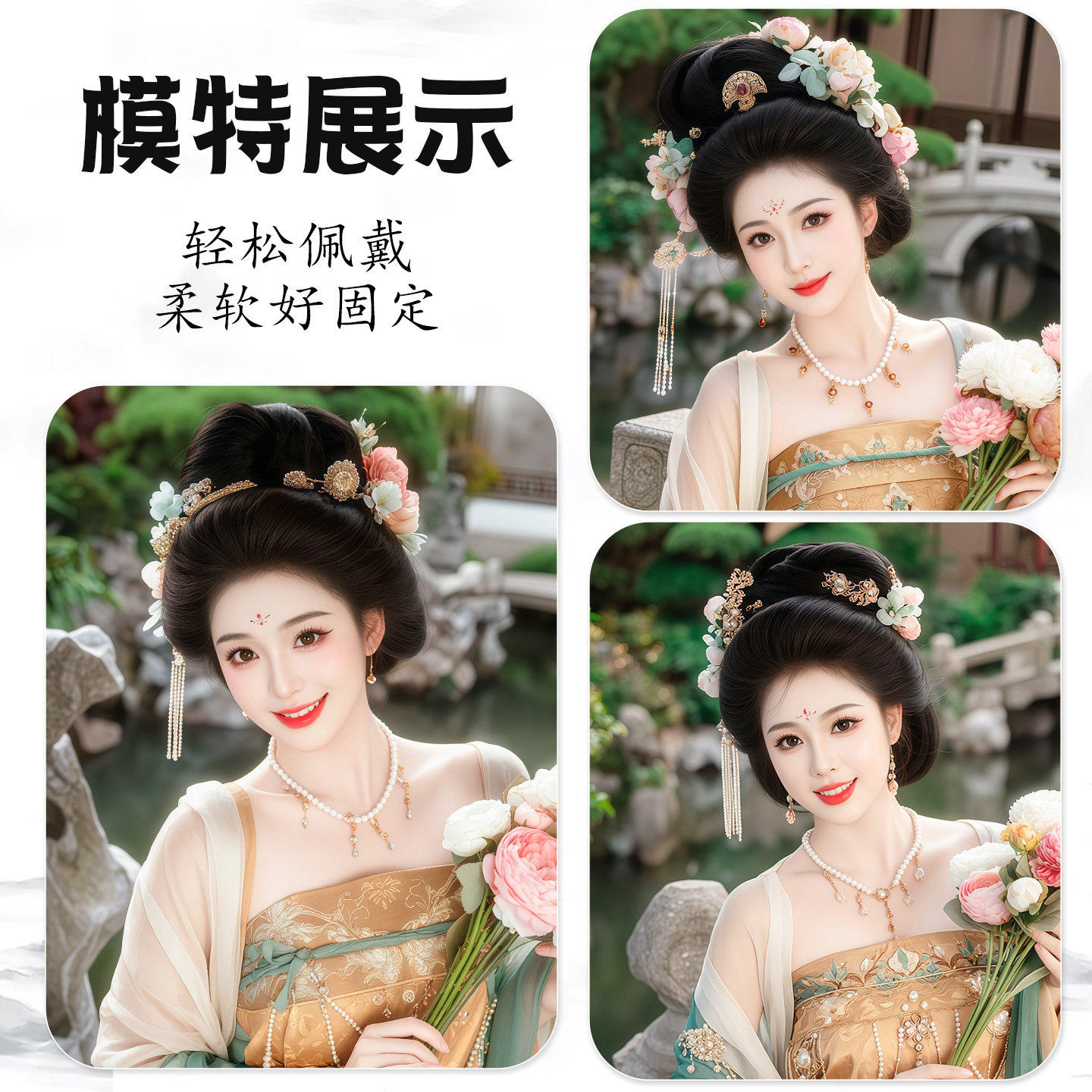 古风汉服假发髻盘发一体式发包古装明制唐风懒人造型垫发全套头饰